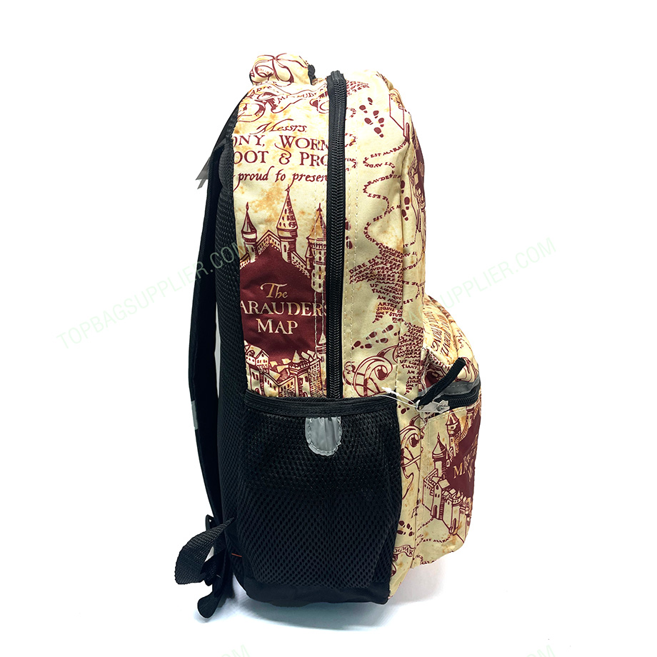 The backpack/school bag is a practical and ergonomic choice for carrying school materials. The simplistic, classic design means this backpack will make sense wherever the day takes you. It’s also a great travel bag. Comfortable padded straps make it easy to sling and wear. The ergonomic shape rests perfectly on your back or shoulder. And there’s comfort in knowing that everything you need to maximize your day is right there at your fingertips. Harry Potter The Marauders Map Kids Backpack -Customized size -Customized logo -1 front zipper pocket -1 main zipper pocket -2 flat side pockets -Back pad