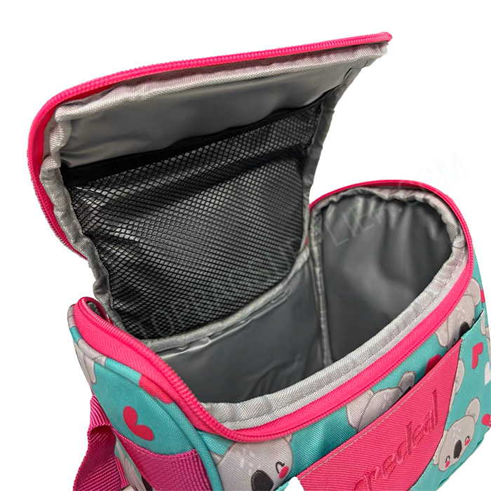 Insulated lunch bag for kids designed to keep food and drinks at a desired temperature for a certain period of time.