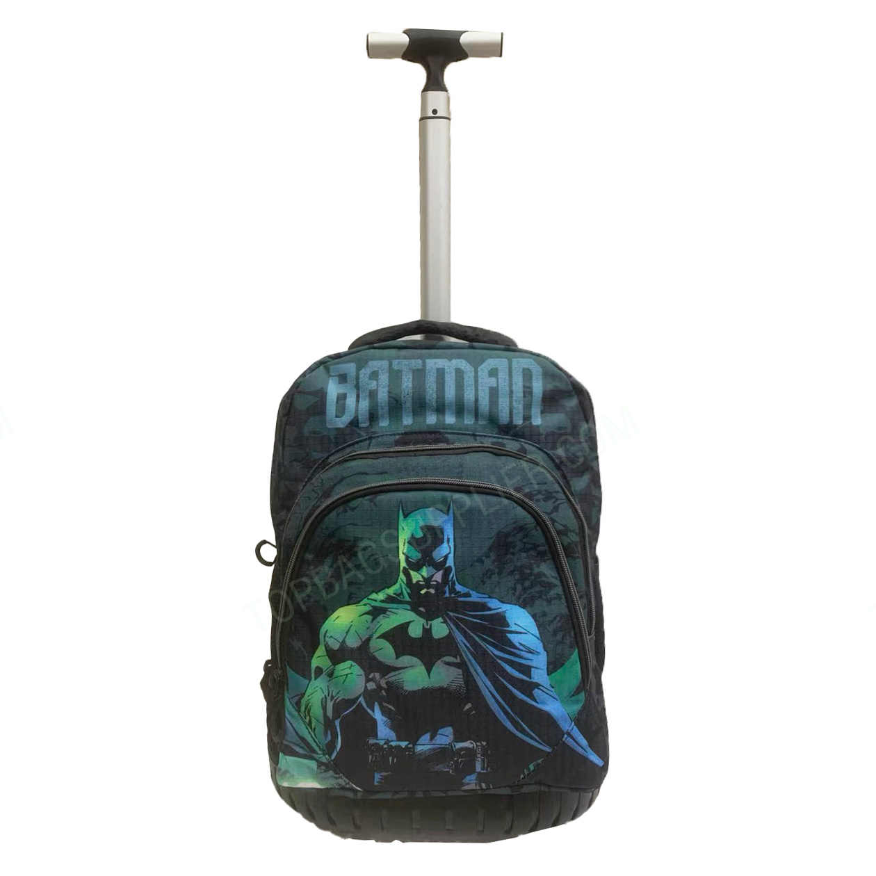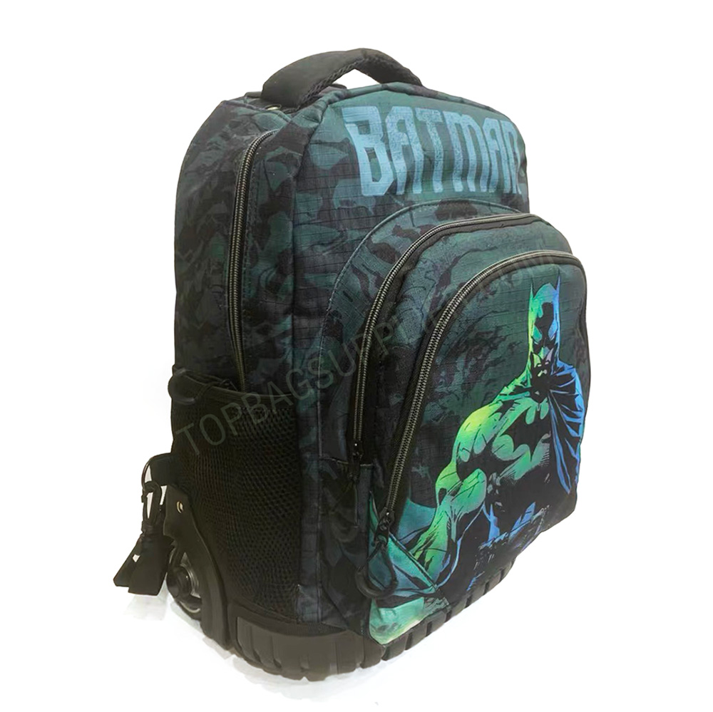 DC Comics Batman School Bag Trolley This rolling backpack looks cute with a geometric pattern that is made of high quality and durable Oxford, which is waterproof, so it can protect your stuff like a laptop from rain. The trolley is made of sturdy and aluminum alloy for carrying heavy things. Practical design, very suitable for primary school students, also suitable for travel, school or daily use. If you have any questions about our trolley backpacks, please feel free to contact us. -Customized size -Customized logo -2 Front pockets -1 main zipper pocket -2 side pockets -Back pad
