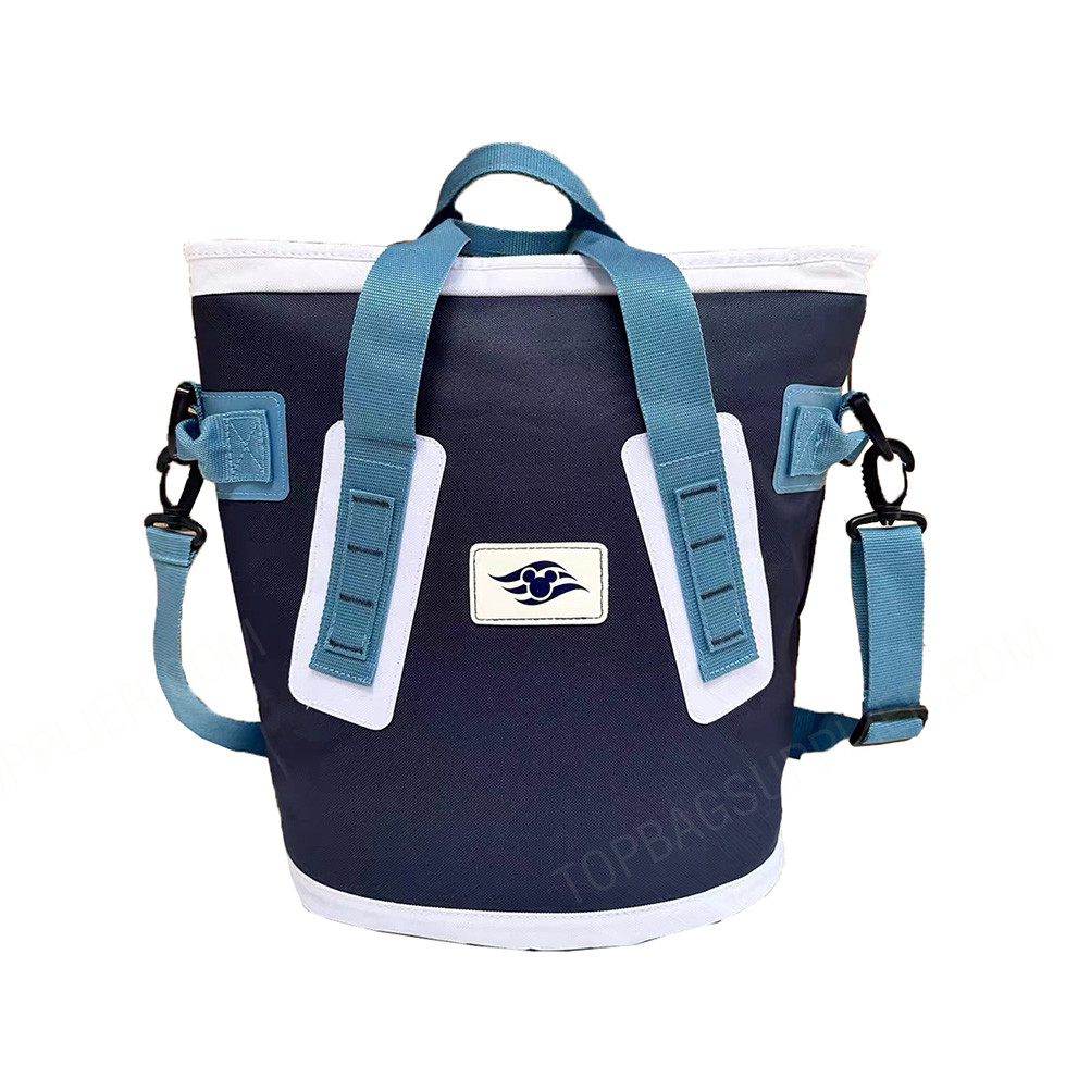 Made of thick insulating material that keeps food and drink cold when you are traveling.