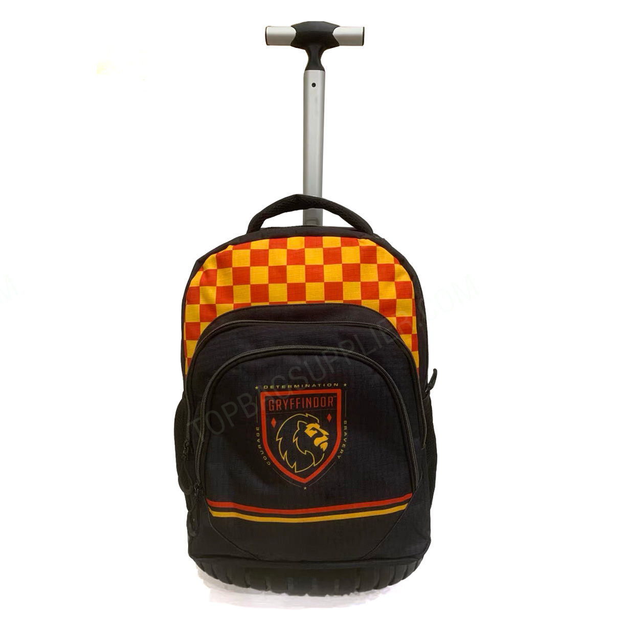 Ghiozdan Harry Potter Rolling Backpack This rolling backpack looks cute with a geometric pattern that is made of high quality and durable Oxford, which is waterproof, so it can protect your stuff like a laptop from rain. The trolley is made of sturdy and aluminum alloy for carrying heavy things. Practical design, very suitable for primary school students, also suitable for travel, school or daily use. If you have any questions about our trolley backpacks, please feel free to contact us. -Customized size -Customized logo -2 Front pockets -1 main zipper pocket -2 side pockets -Back pad