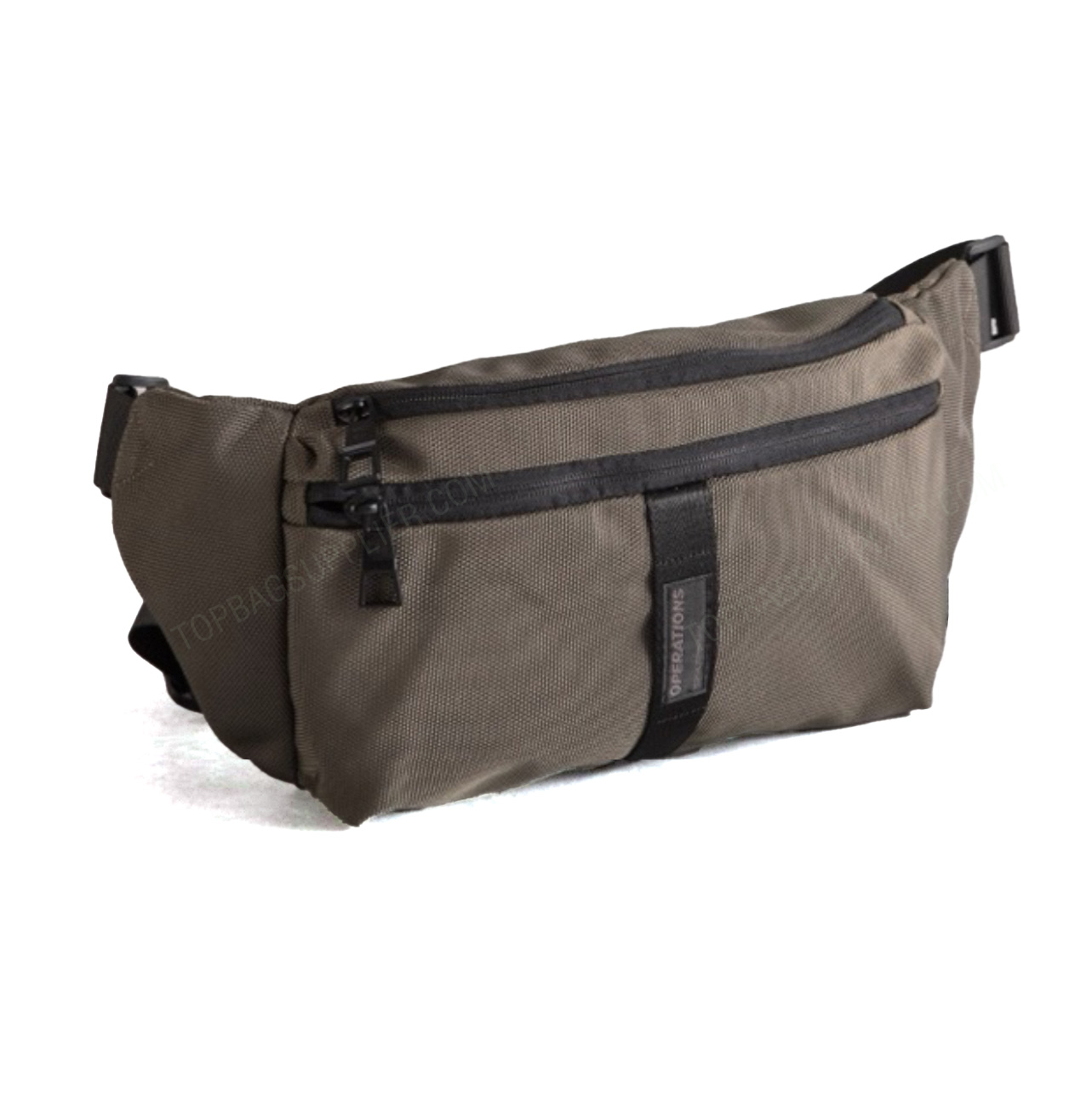 Long webbing belt with side release buckle allows you to wear it around the waist or as a cross body.