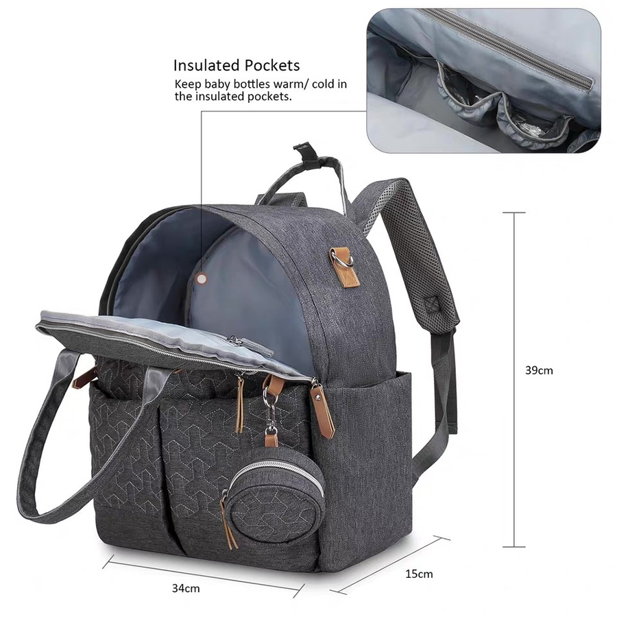 The neutral colors and stylish design make this the perfect diaper backpack for mom and the perfect diaper backpack for dad.