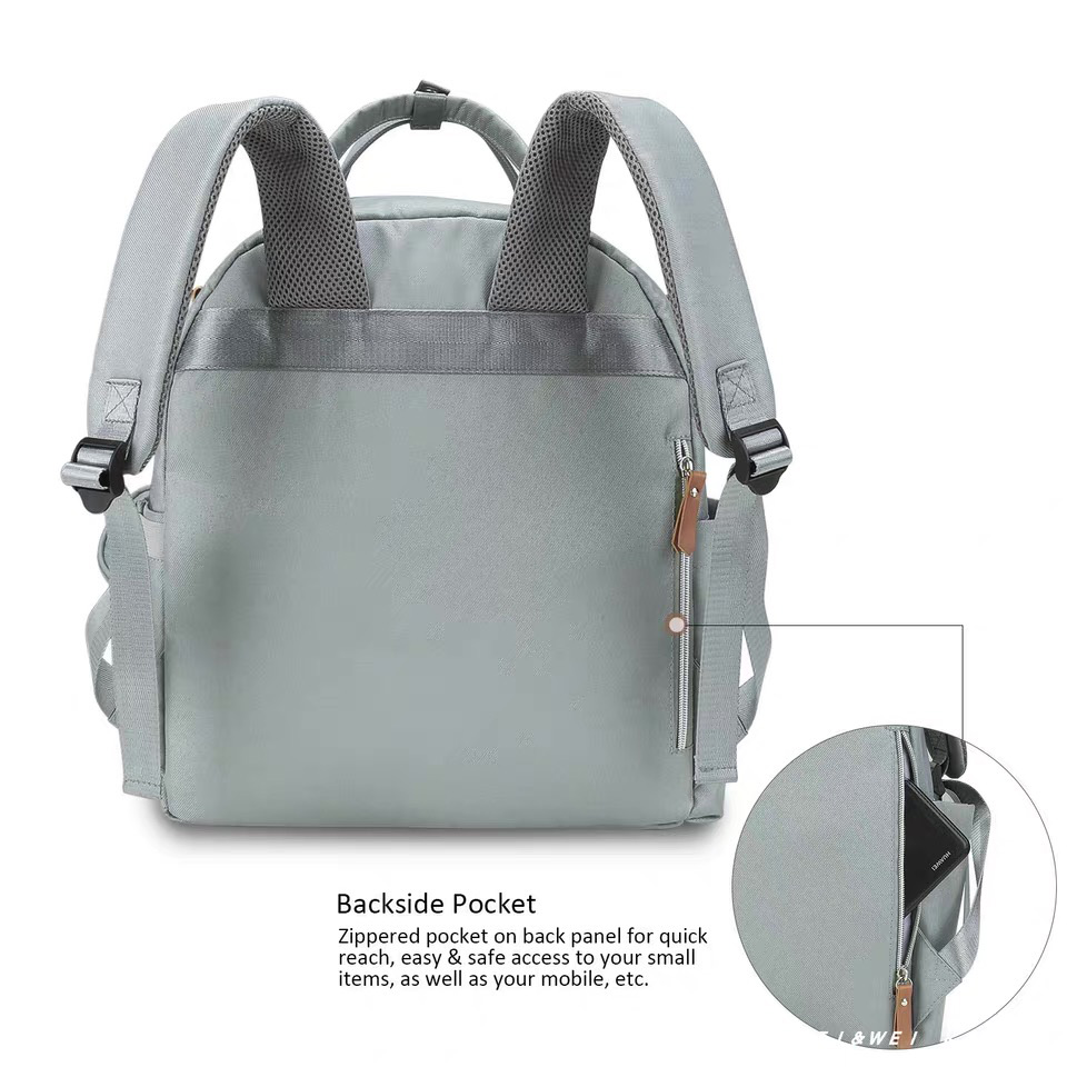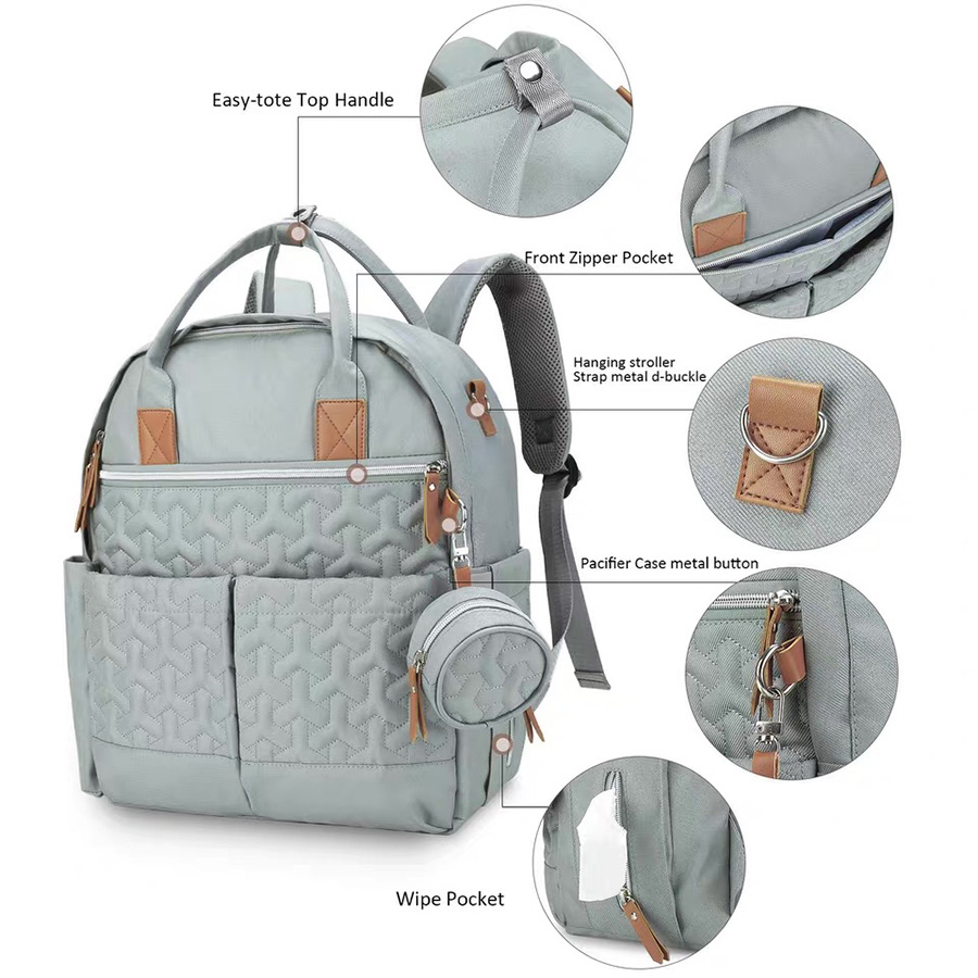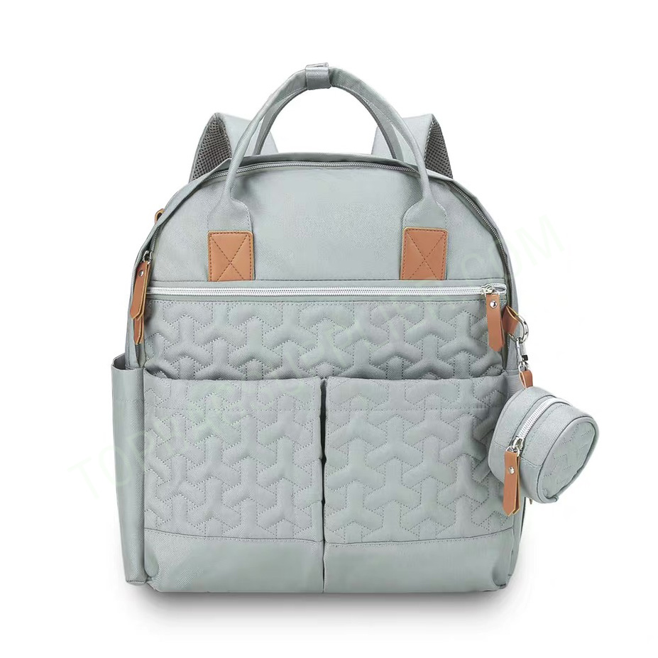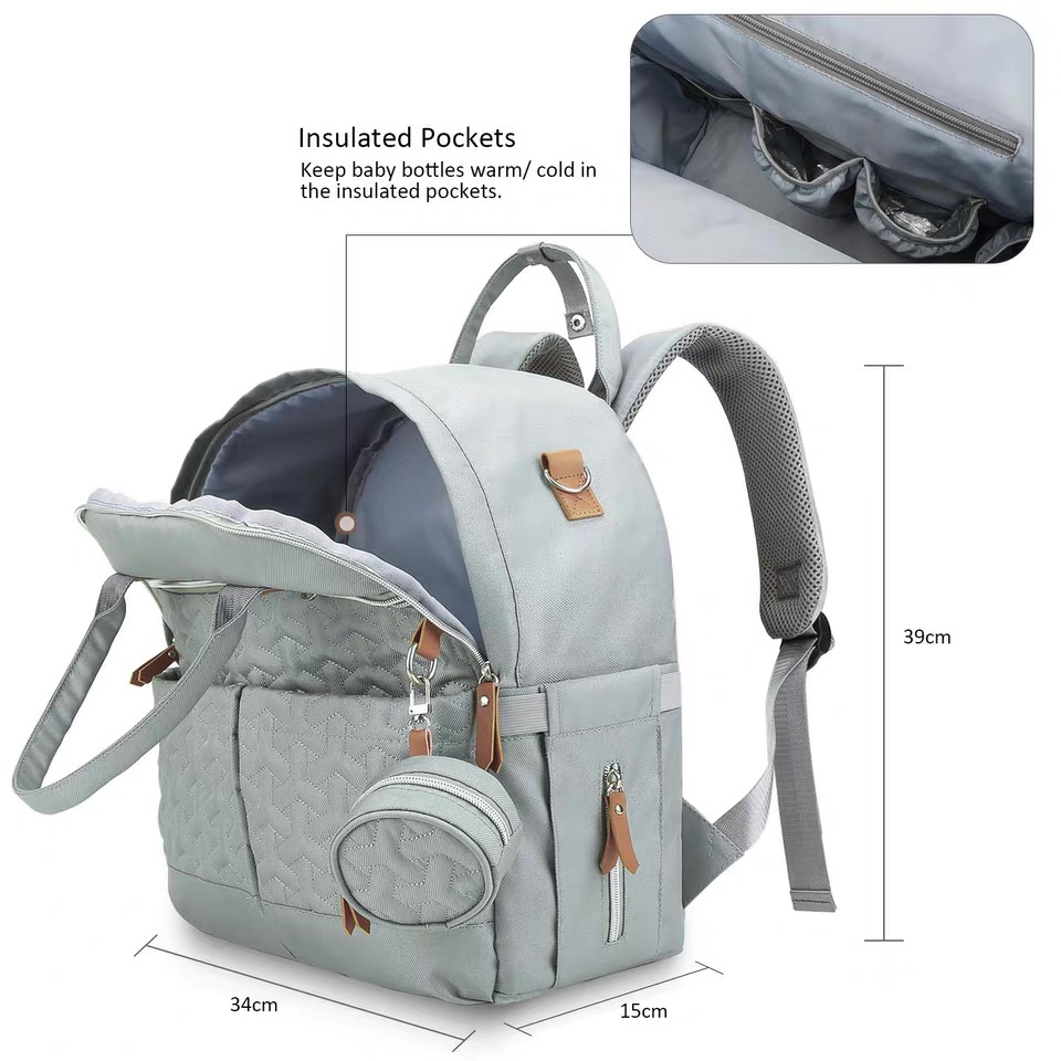 Large Capacity Diaper Backpack The diaper bag was designed with the entire family in mind. The neutral colors and stylish design make this the perfect diaper backpack for mom and the perfect diaper backpack for dad. We also made sure to represent the baby with our design being the perfect diaper bag for boys and girls. The diaper bags come with extra shoulder, lower back, and strap padding to add the maximum amount of comfort with a ventilation design incorporated to allow for ventilation while wearing which allows you to carry it all day, everyday comfortably. -Customized size -Customized embroidery/logo -3 front pockets -1 main zipper pocket -2 side pockets