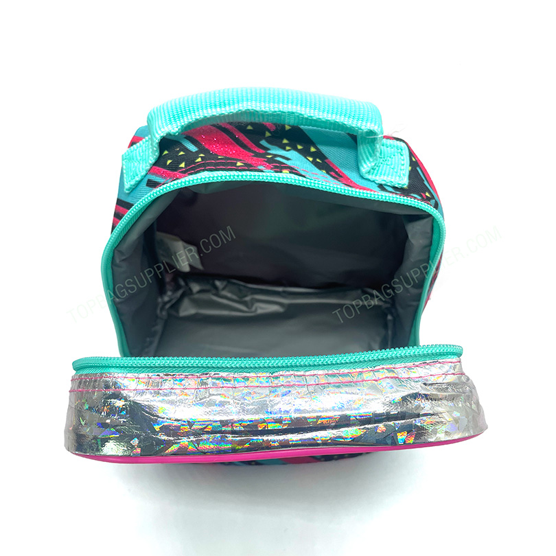 Insulated lunch bag for kids designed to keep food and drinks at a desired temperature for a certain period of time.