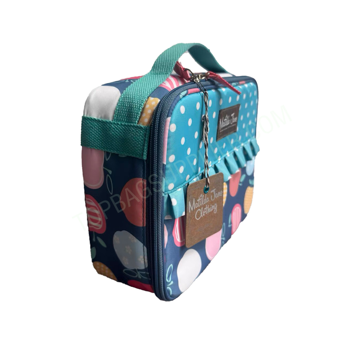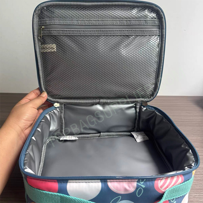Insulated lunch bag for kids designed to keep food and drinks at a desired temperature for a certain period of time.