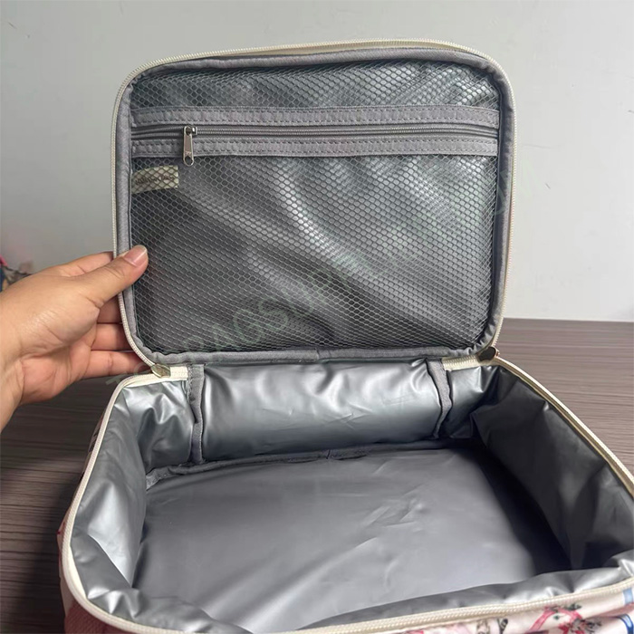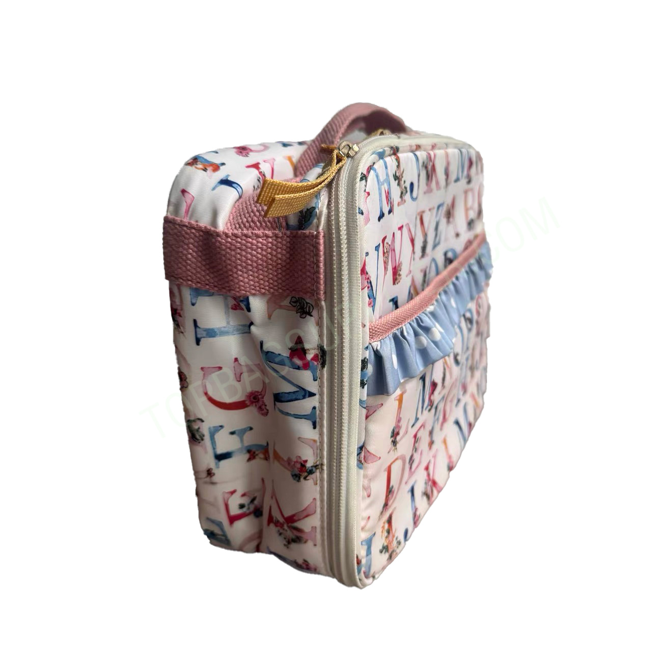 Insulated lunch bag for kids designed to keep food and drinks at a desired temperature for a certain period of time.