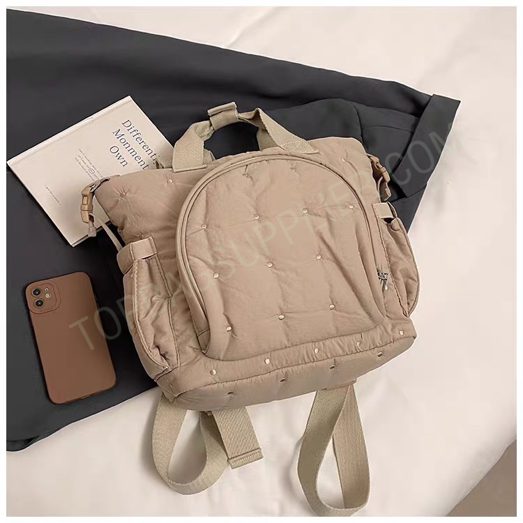 The diaper bag backpack was designed with the entire family in mind. The neutral colors and stylish design make this the perfect diaper backpack for mom and the perfect diaper backpack for dad. We also made sure to represent the baby with our design being the perfect diaper bag for boys and girls. The diaper bags come with extra shoulder, lower back, and strap padding to add the maximum amount of comfort with a ventilation design incorporated to allow for ventilation while wearing which allows you to carry it all day, everyday comfortably. Quilted Tote Nappy Bag Satchel Bag -Customized size -Customized embroidery/logo -1 front pocket -1 main zipper pocket -2 side pockets