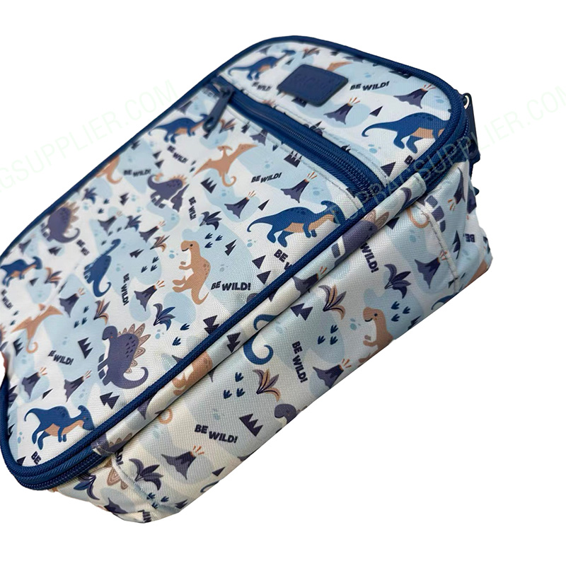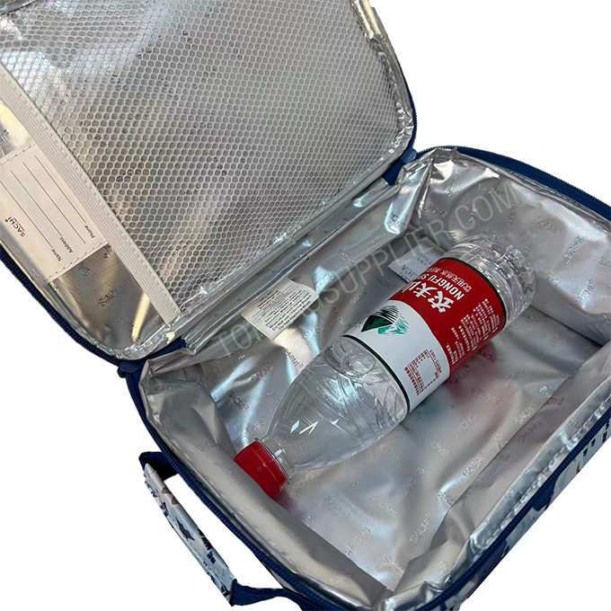 Insulated lunch bag for kids designed to keep food and drinks at a desired temperature for a certain period of time.