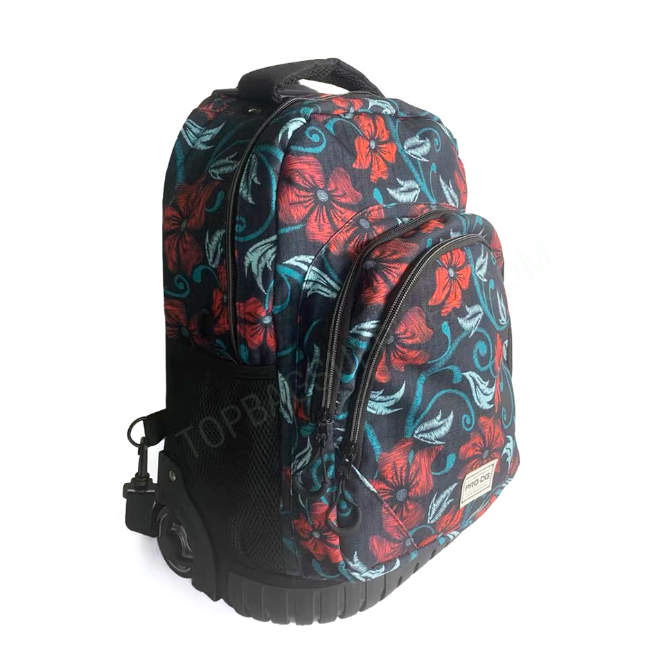 School Rolling Backpack for Girls This rolling backpack looks cute with a geometric pattern that is made of high quality and durable Oxford, which is waterproof, so it can protect your stuff like a laptop from rain. The trolley is made of sturdy and aluminum alloy for carrying heavy things. Practical design, very suitable for primary school students, also suitable for travel, school or daily use. If you have any questions about our trolley backpacks, please feel free to contact us. -Customized size -Customized logo -2 Front pockets -1 main zipper pocket -2 side pockets -Back pad