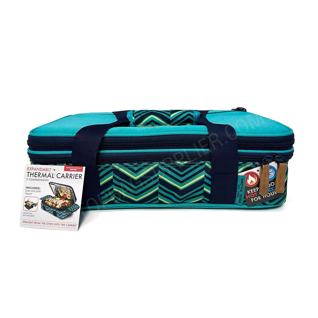 Made of thick insulating material that keeps food and drink cold when you are traveling.