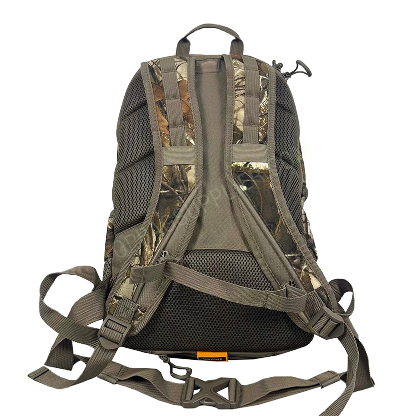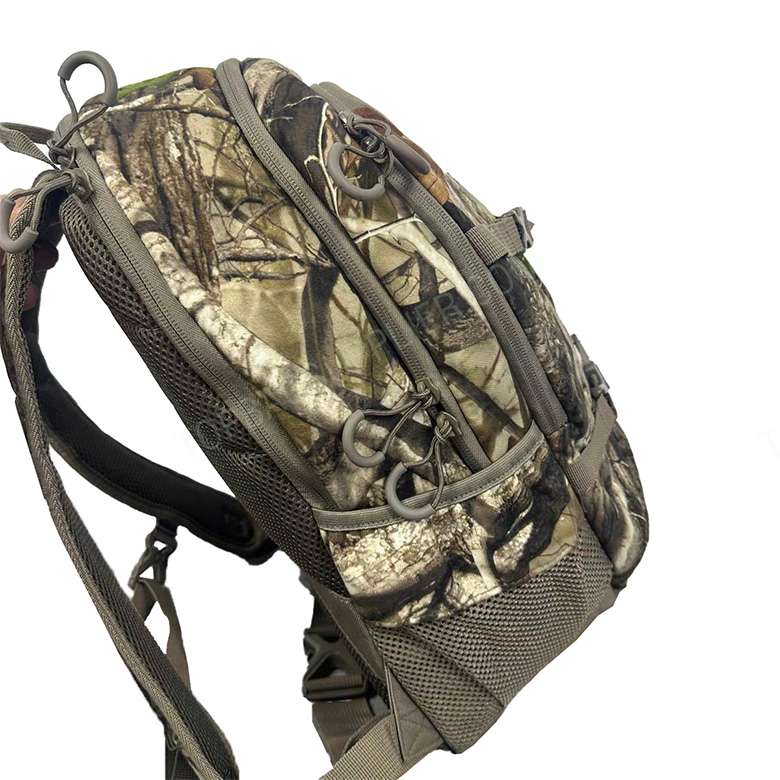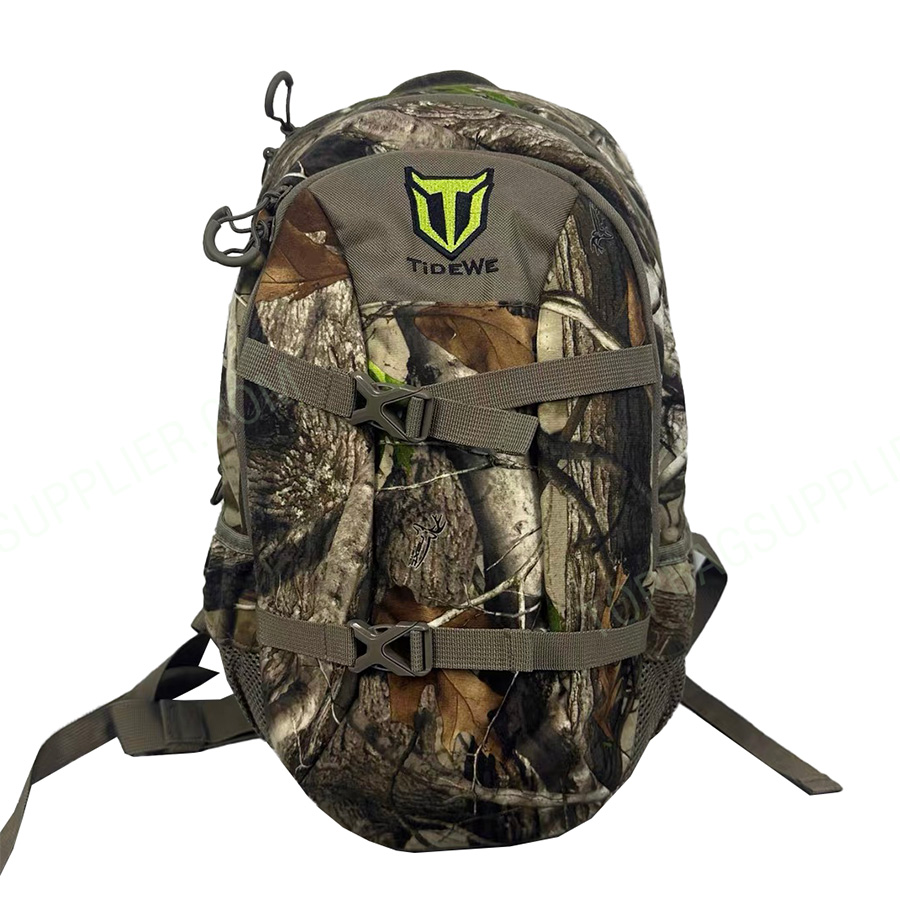 TiDEWE 900D Camo Hunting Backpack TIDEWE hunting day pack is equipped with premium fabric, durable buckles and straps. We add ergonomic padding to the shoulder and back for the backpack to maximize your comfort. Built-in rain cover will keep your gear dry and safe from the elements when you least expect it. With multi-pocket design, TIDEWE hunting bag will meet all your needs outdoor. -Customized size -Customized logo -1 front pocket -2 main pockets -2 side mesh pockets -Back Pad